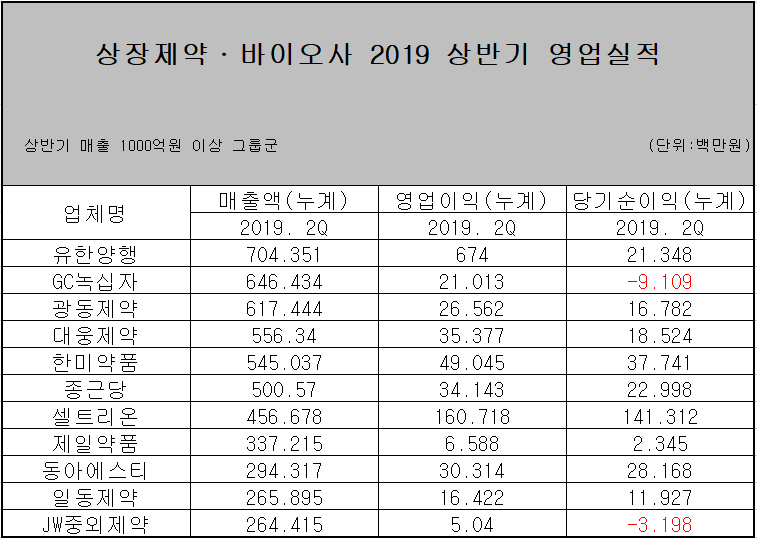 Q. 국내 제약회사 영업실적 순위에 대해서 알고 싶습니다 1 추천 비추천 북마크 국내 제약회사 영업실적 순위에 대해서 알려주실 수 있으신가요?? #국내제약회사순위#제약영업#제약회사영업실적#국내제약회사영업실적순위#제약산업분석#기업분석 `20.11.05 질문 수정 제안 제안 제안 쓰기 확인 취소 1 개의 답변 최신 추천 1 추천 비추천 A.안녕하세요 질문하신 국내 제약회사 영업실적 순위에 대해서 알려드리겠습니다. 먼저 하단 표 참고 부탁드립니다. 제약바이오주 매출 1위는 유한양행으로 상반기 매출 7,043억원을 달성하였습니다. 그 뒤를 이어, GC녹십자가 6,464억원, 광동제약이 6,174억원, 대웅제약이 5,563억원, 한미약품이 5,450억원, 종근당이 5,5005억원으로 TOP5를 차지하였습니다. 바이오회사순위 TOP 5의 기업들은 모두 상반기 매출 5,000억을 넘어서 올해 1조 클럽 가입이 유력합니다. 더 궁금하신 사항이 있으시면 잡인덱스 홈페이지 써클 카테고리에 질문을 남겨주세요 :) 감사합니다. 기업별 정보를 한눈에 jobindex `20.11.06(updated. `20.11.06) 답변달기 답변달기 답변 등록하기