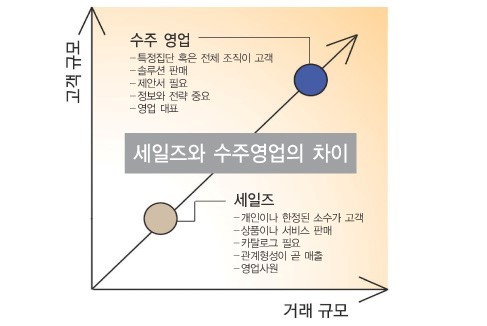 수주영업은 우리가 흔히 알고 있는 세일즈와 다르다. 수주영업은 기업이나 공공조직과 같은 집단에 큰 규모의 솔루션을 제안해 판매하는 작업이다. 이를 담당하는 사람도 영업사원이라고 불리지 않고, 판매자 조직을 대표하는 ‘영업대표’로 불린다.