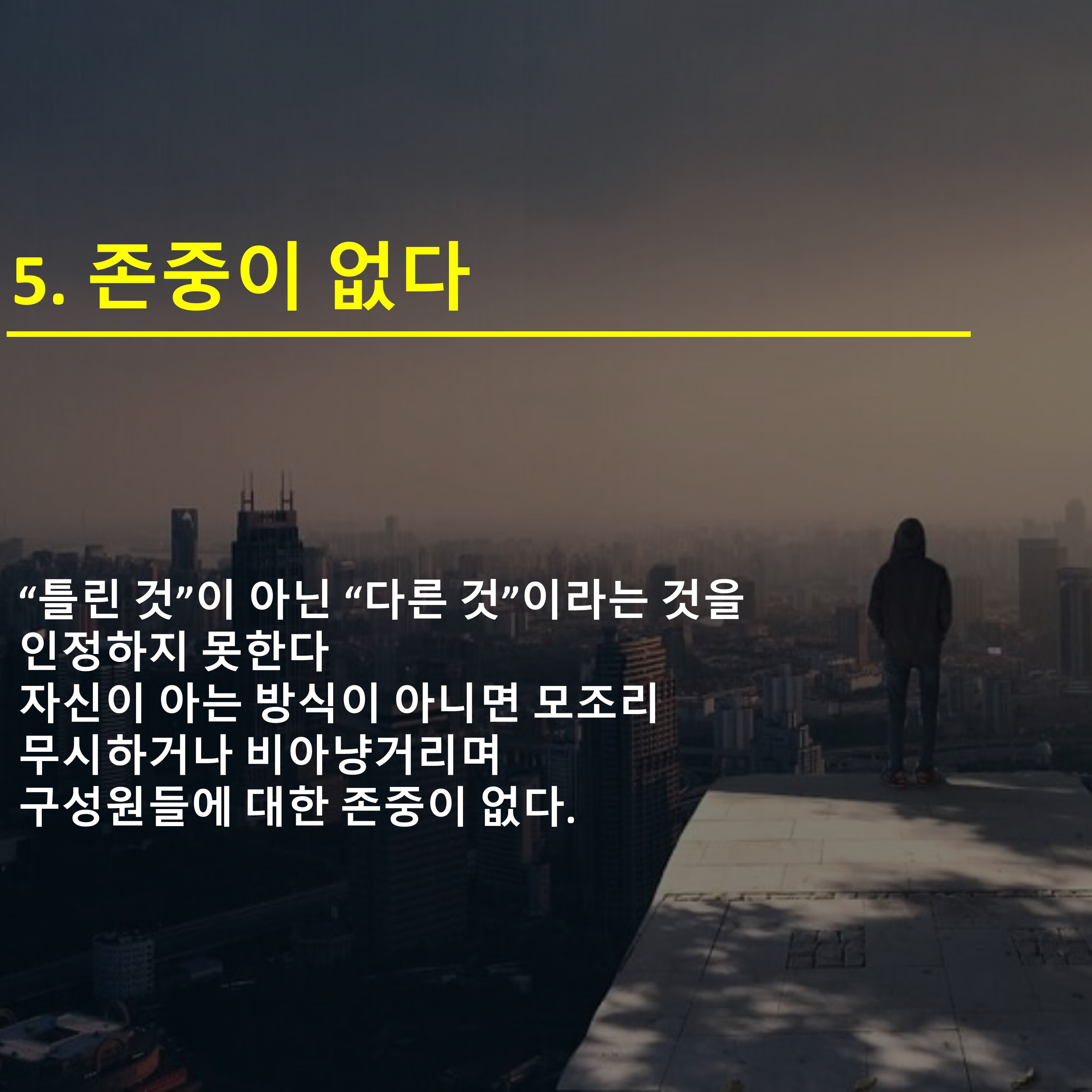 5. 존중이 없다 - 다르다 라는 개념이 없다