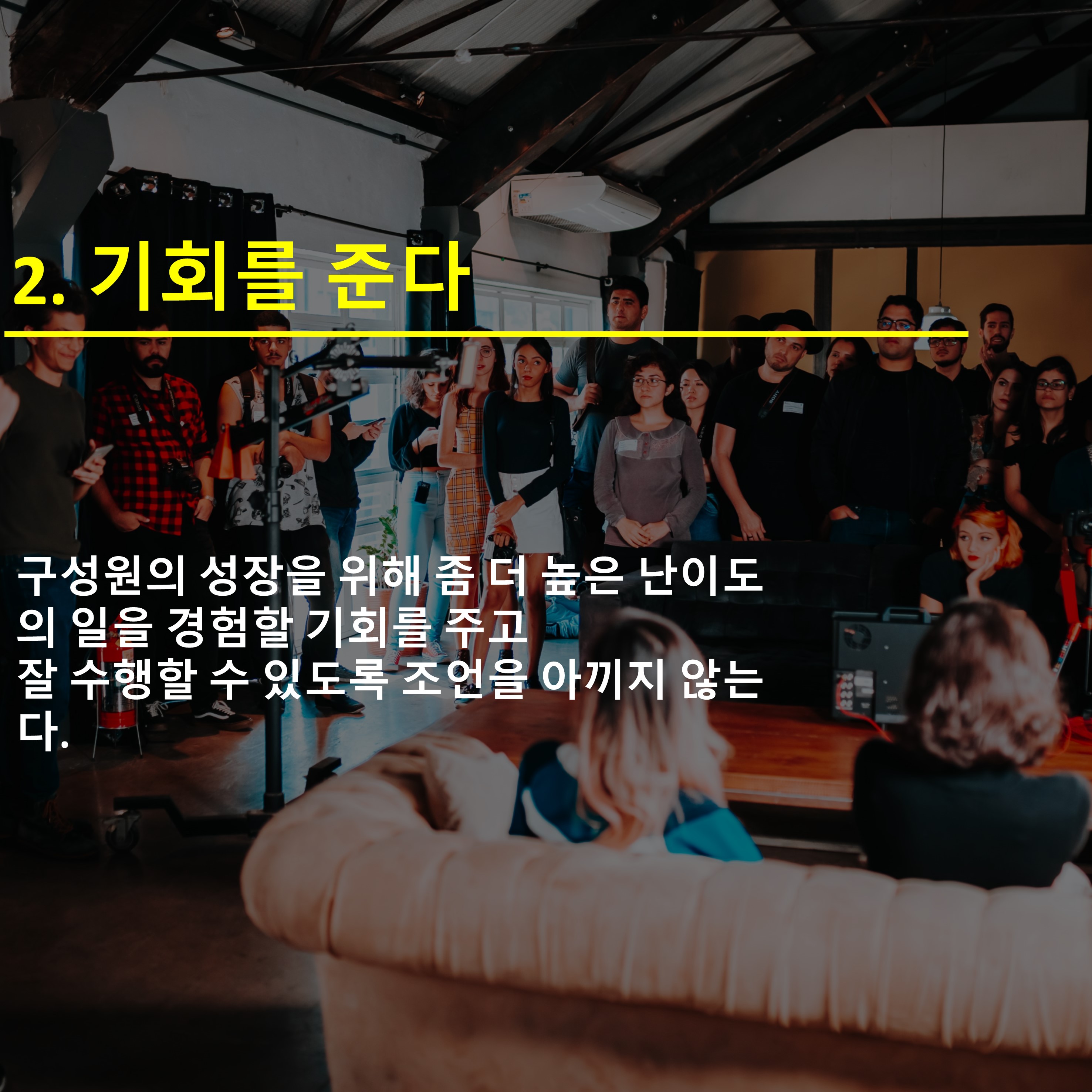(2. 기회를 준다 - 구성원의 성장의 발판을 마련해 준다, 일을 해봐야 깨져도 성장할 수 있는 것이니까)