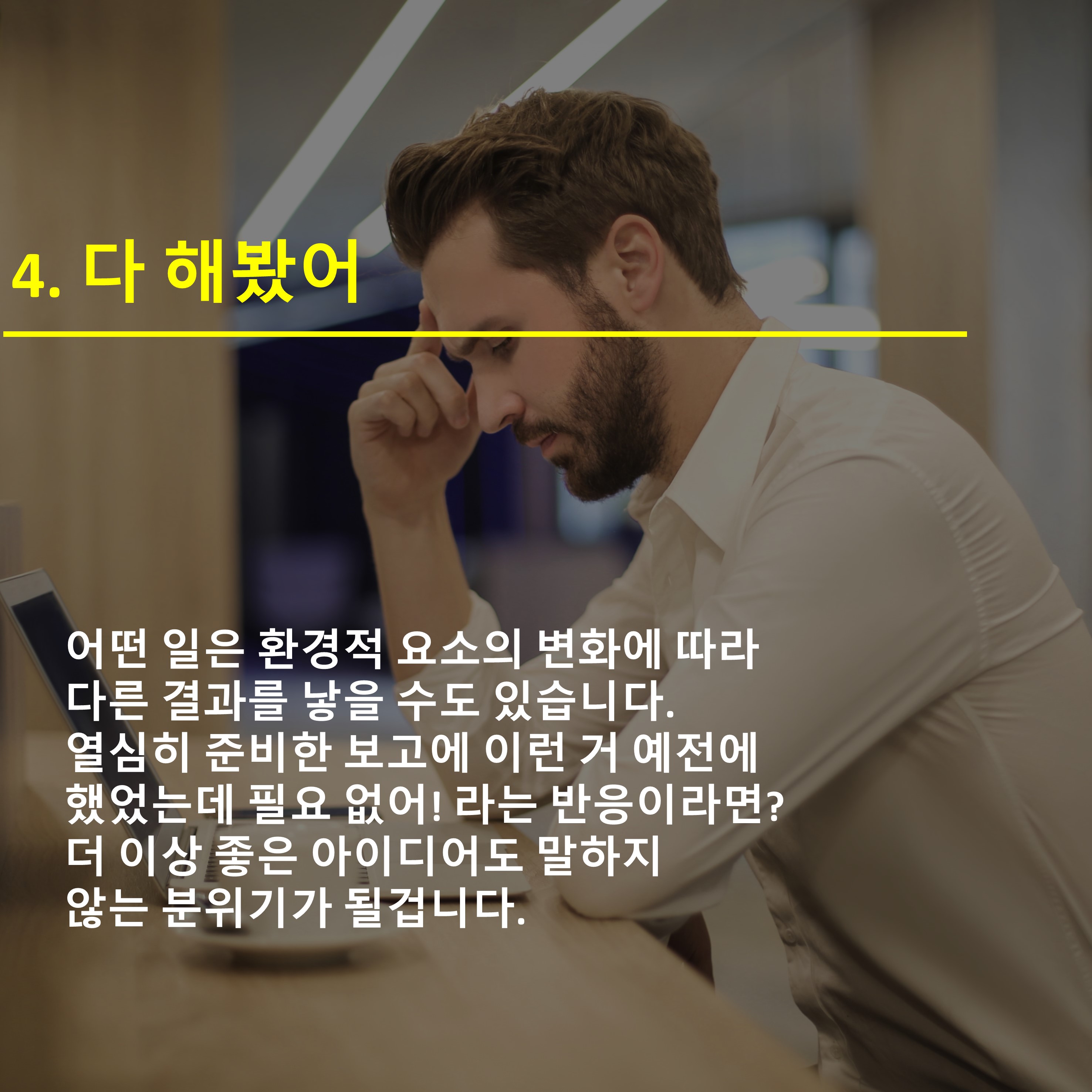 (다 해봤어 - 환경의 변화, 변수들을 고민해보시죠~)