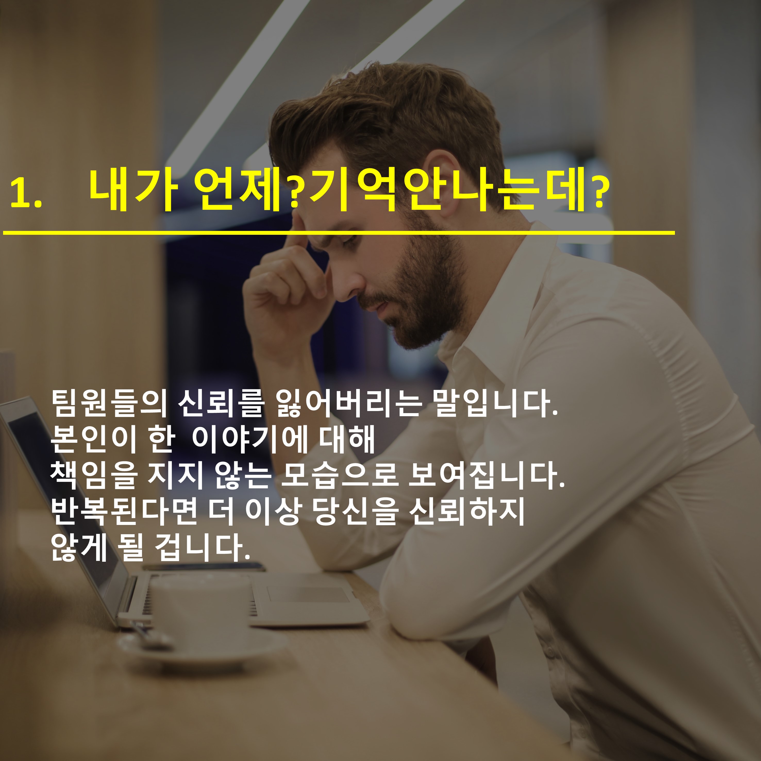 (내가 언제? 기억안나는데? - 말을 하지 말아야지. 모두가 알고 있음. 책임 회피자!!)