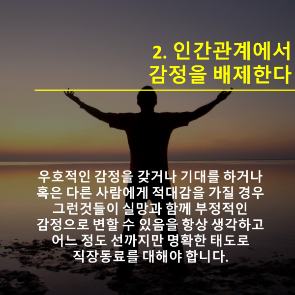 (2. 인간관계에 대한 감정을 배제한다 - 괜히 기대만 하게 된다. 그만큼 실망도 큰것이고)