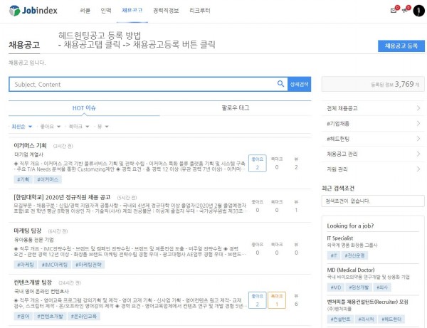 잡인덱스에서 헤드헌팅 공고를 등록하는 방법은?