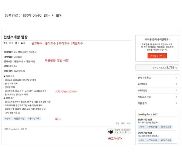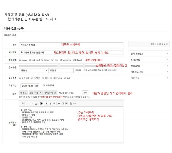 1. 제목 : 채용하는 포지션을 잘 나타낼 수 있도록 상세하게