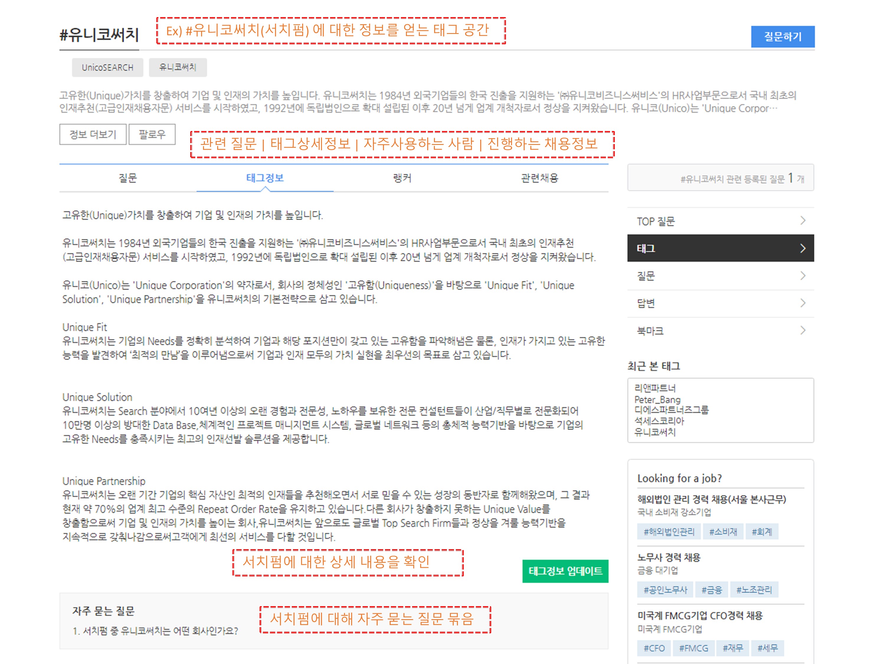 2. 서치펌에 대한 질문내용, 상세정보, 관련 채용등을 통해서 정보를 파악하게 됩니다.