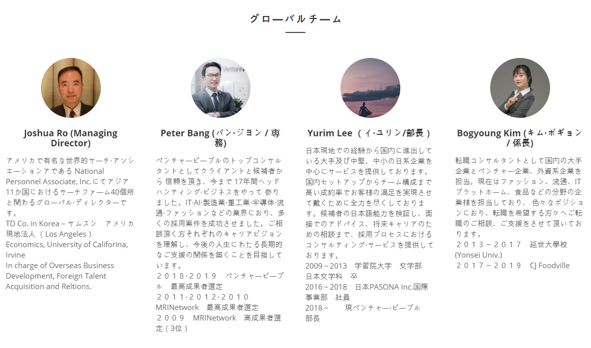 일본계 기업의 헤드헌팅 서비스 영역으로의 업무 확장으로 벤처피플에서 일본어 홈페이지 서비스를 제공해드립니다.