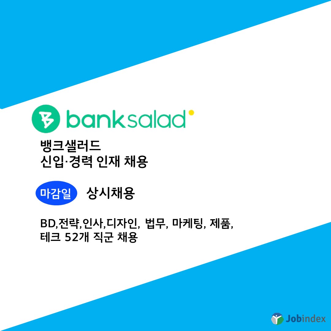 뱅크샐러드 관련 정보 바로가기 https://www.jobindexworld.com/jobpost/view/28548