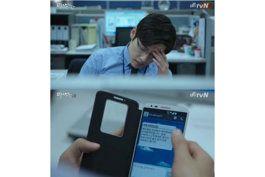 <헤드헌터 문자를 보고 고민하고있는 장백기 tvn 미생>