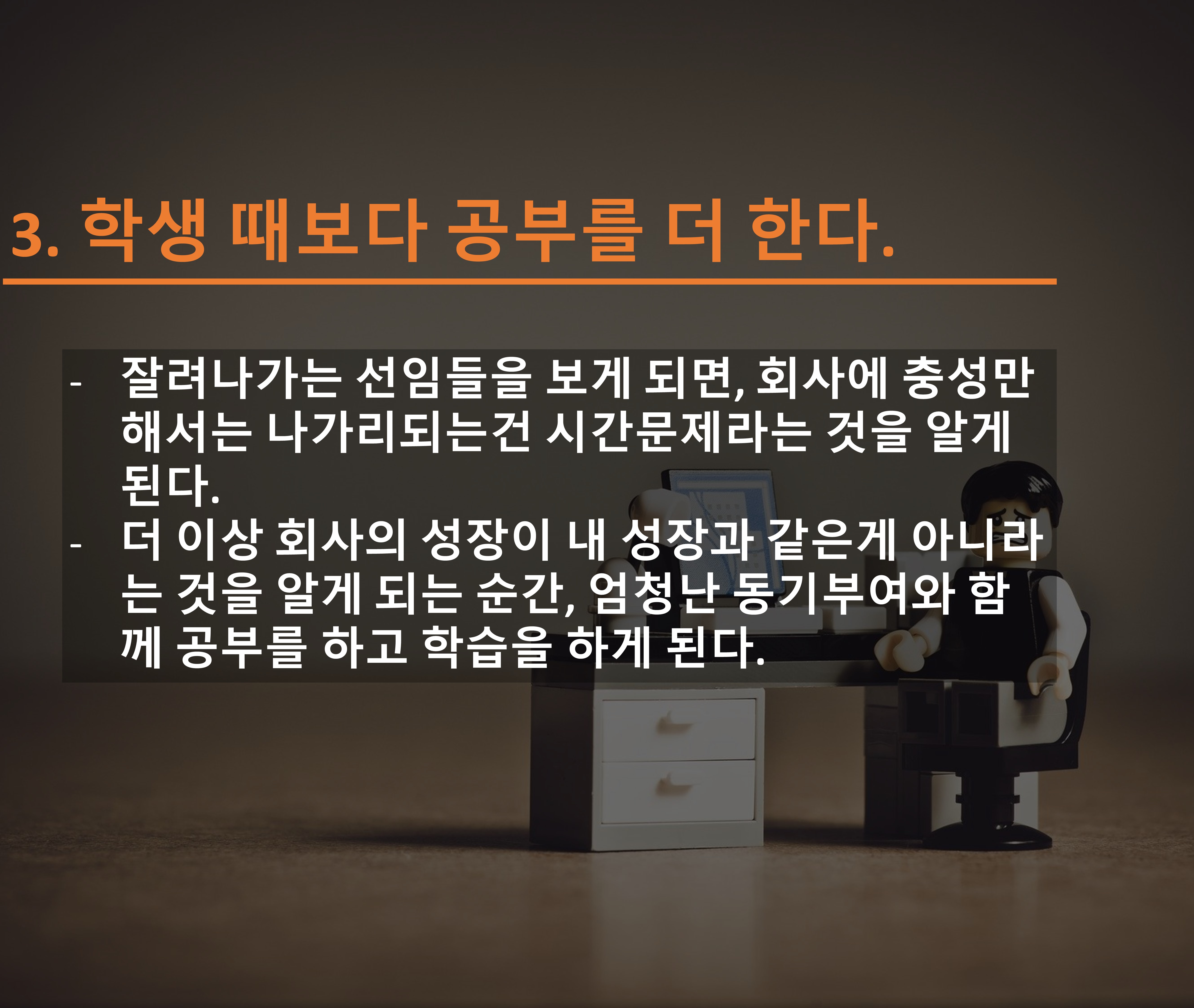 3. 학생 때 보다 공부를 더 하는 느낌이다.