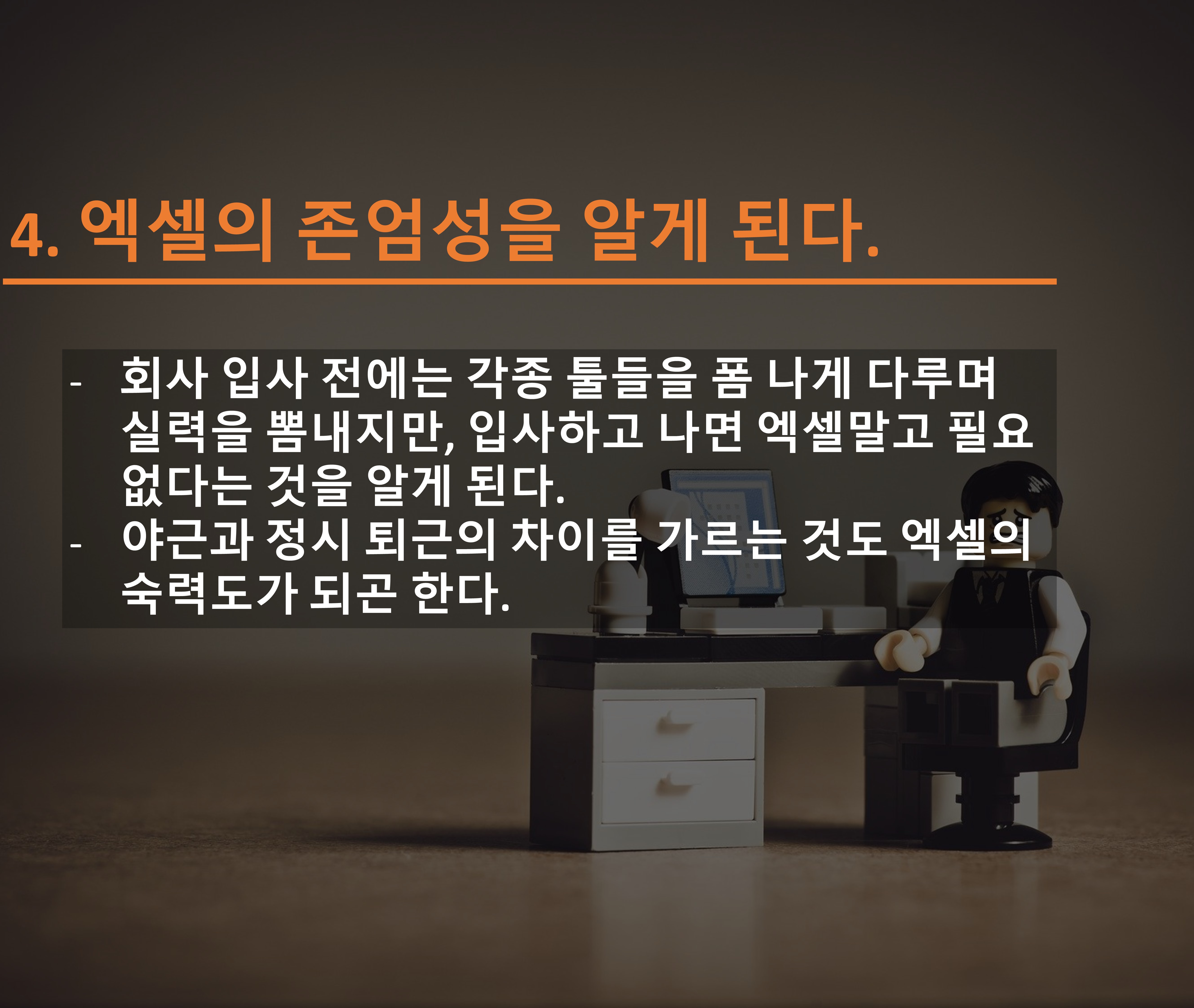 4. 엑셀의 존엄성에 대해 알게 된다.