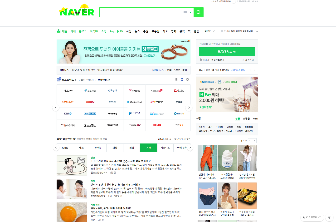 - 쇼핑정보는 우측하단 - 메일 확인은 네이버