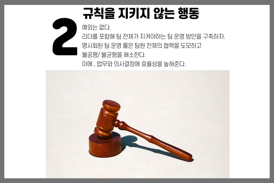 각기 다른 팀원들이모여 조직의 공동 목표를 달성하기 위해 어떤 행동을 하지 말아야 할까요?