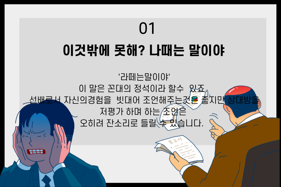 당신은 후배들 사이에서 '라떼는 말이야~'를 자주하는 꼰대인가요?! 아니면 부하직원들이 좋아하고 잘 따르는