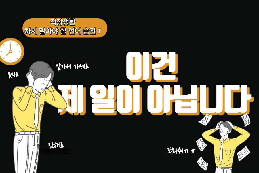 - 평상시 자신의 업무와 조금 다른 일을 받았다고 해서 정 없이 '이건 제 일이 아닌데요?' 라고 딱 짤라 말할 필요 없겠죠?