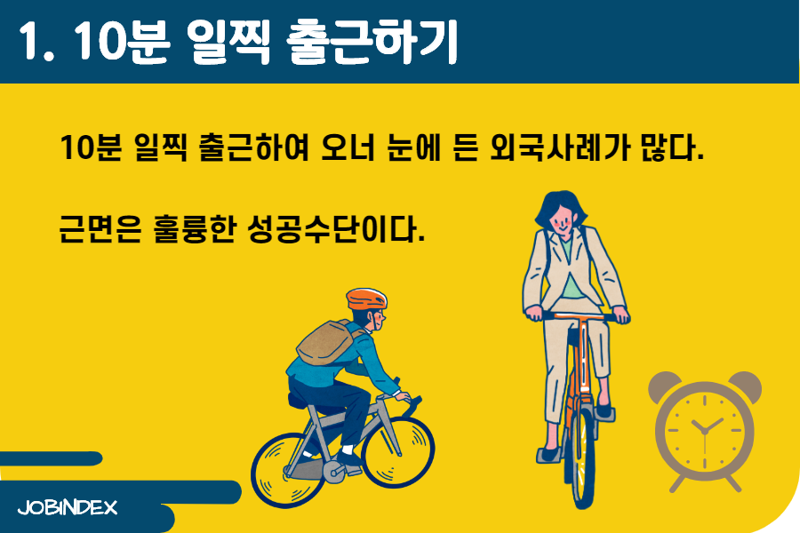 10분 일찍 출근하여 오너 눈에 든 외국사례가 많다.