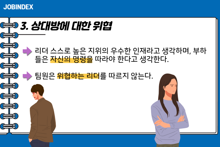 팀원은 위협하는 리더를 따르지 않는다.