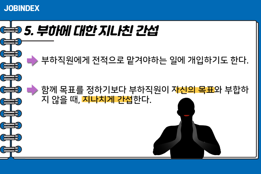 함께 목표를 정하기보다 부하직원이 자신의 목표와 부합하지 않을 때, 지나치게 간섭한다.