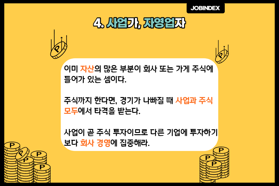 주식까지 한다면, 경기가 나빠질 때 사업과 주식 모두에서 타격을 받는다.