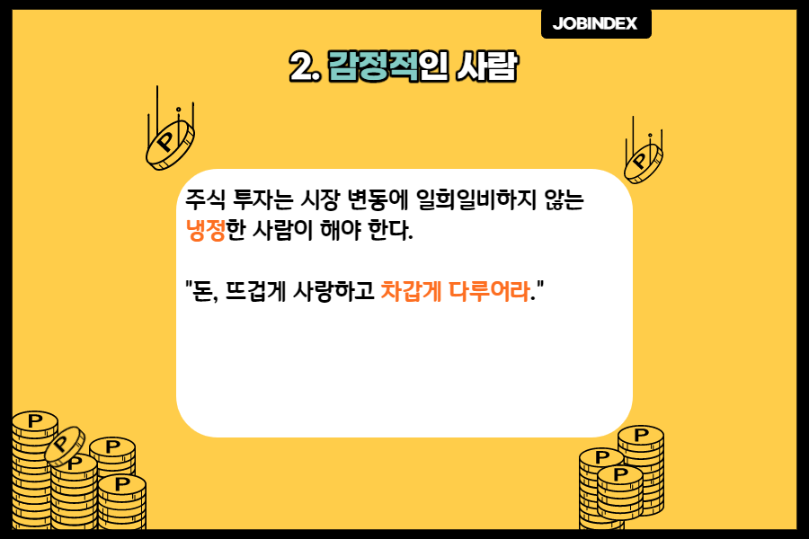 주식 투자는 시장 변동에 일희일비하지 않는 냉정한 사람이 해야 한다.