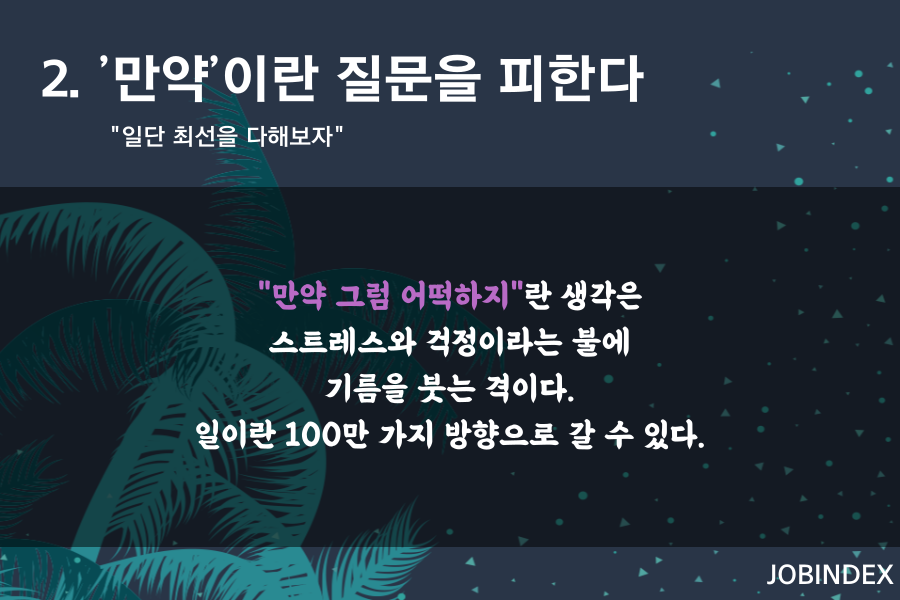 ”만약 그럼 어떡하지란 생각은 스트레스와 걱정이라는 불에 기름을 붓는 격이다.
