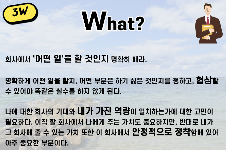 - 회사에서 '어떤 일'을 할 것인지 명확히 해라.