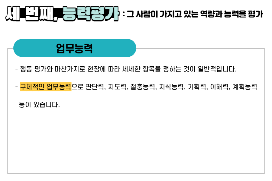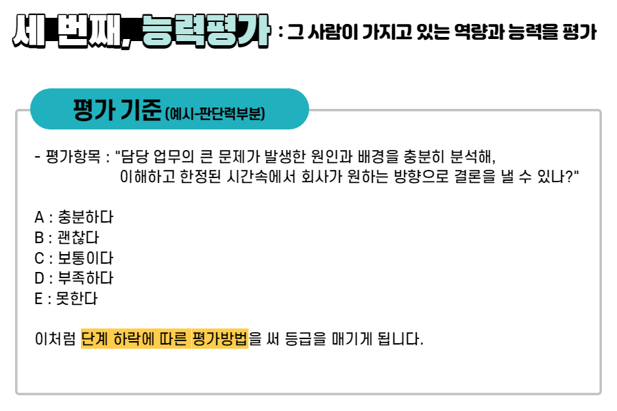 세 번째, 그 사람이 가지고 있는 역량과 능력을 평가하는 '능력평가'