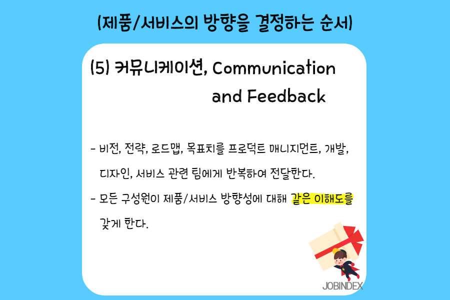 - 모든 구성원이 제품/서비스 방향성에 대해 같은 이해도를 갖게 한다.
