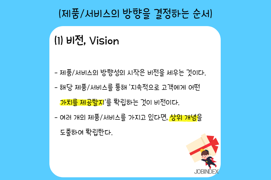 - 제품/서비스의 방향성의 시작은 비전을 세우는 것이다.