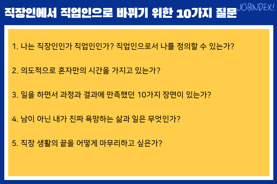 직장인에서 직업인으로 바뀌기 위한 10가지 질문