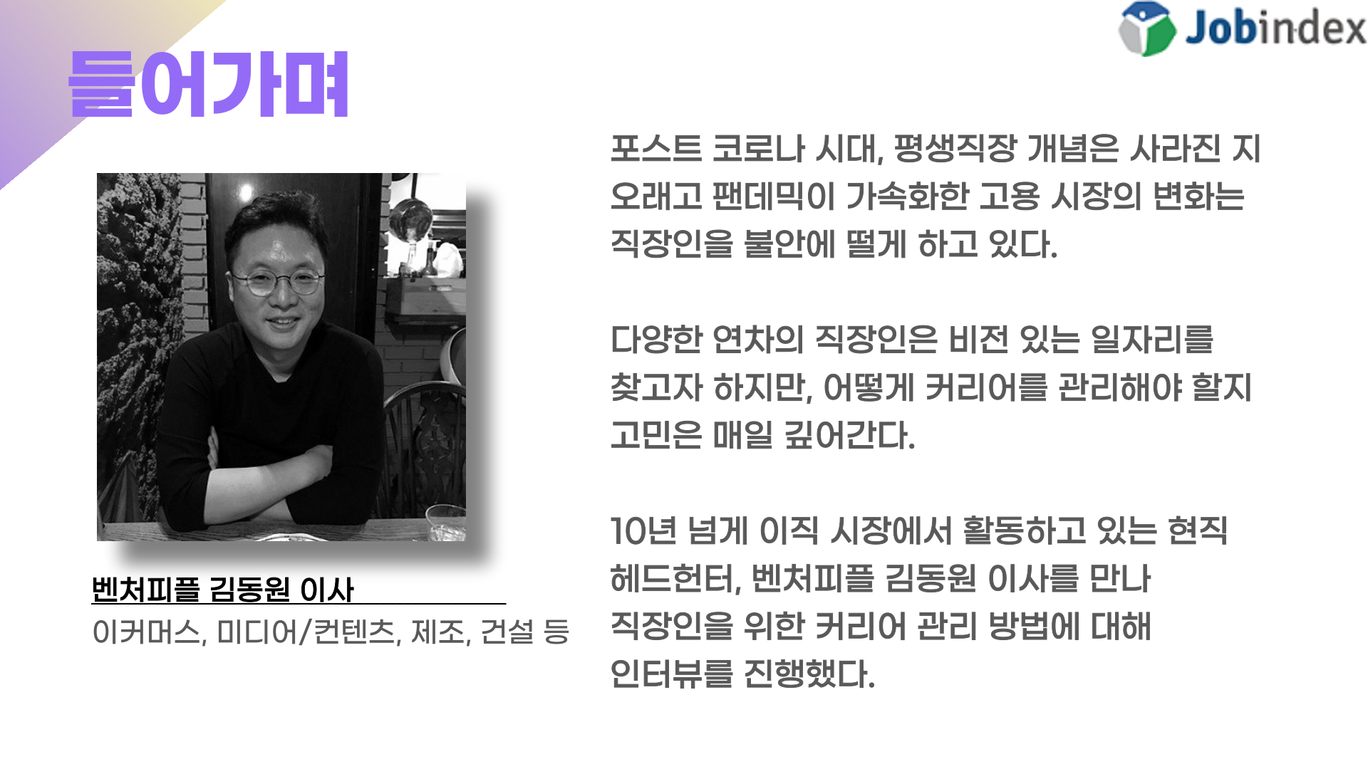 벤처피플 김동원 이사님과 함께 포스트 코로나 시대 커리어 관리 방법에 대해 이야기를 나누었습니다.