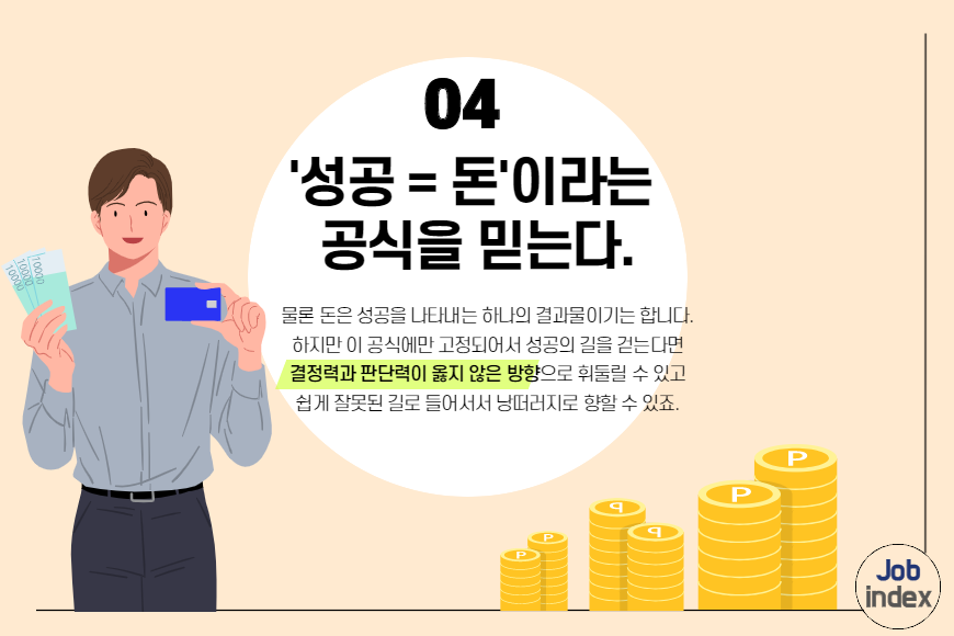 '성공 = 돈'이라는 공식을 믿는다.