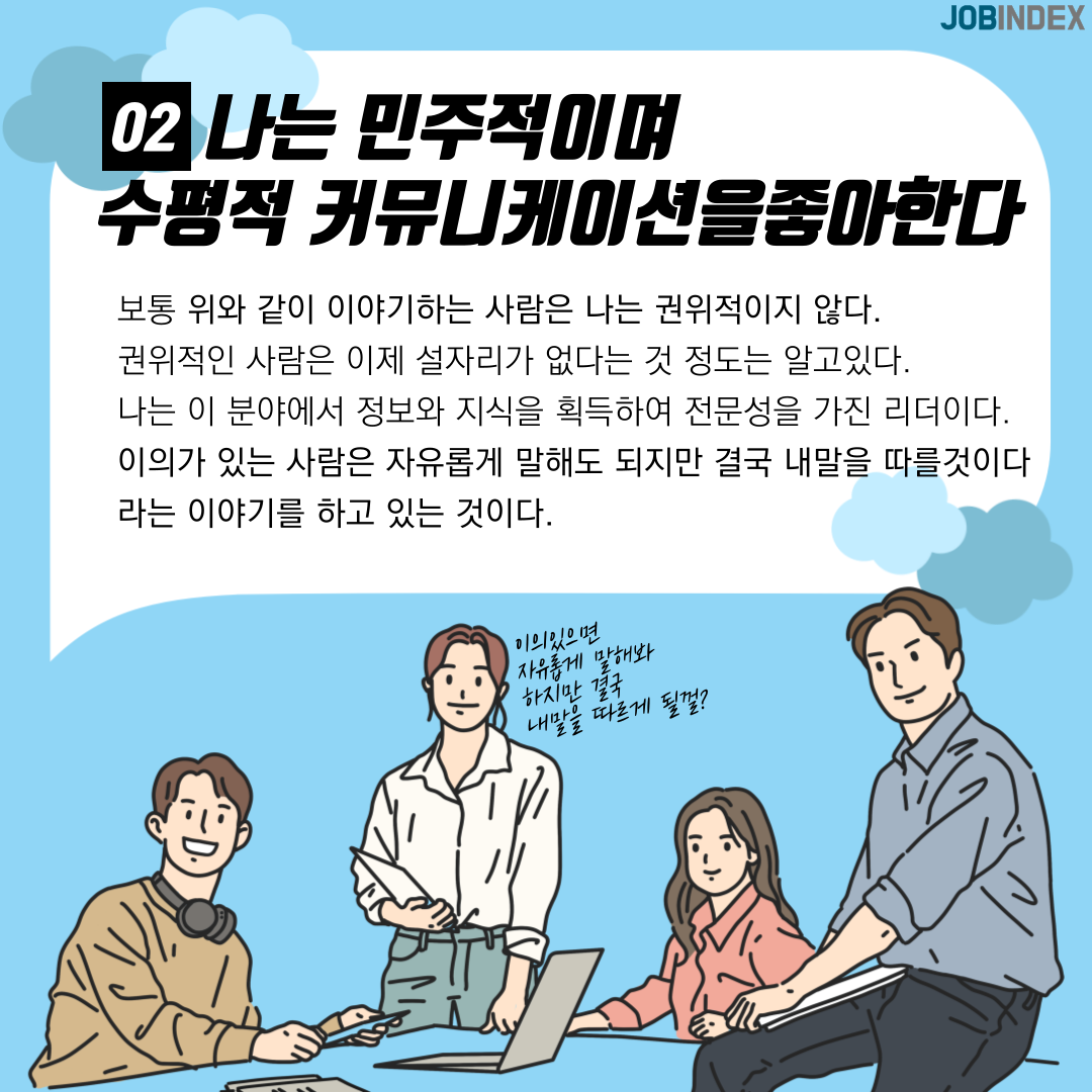 02. 나는 민주적이며 수평적 커뮤니케이션을 좋아한다.