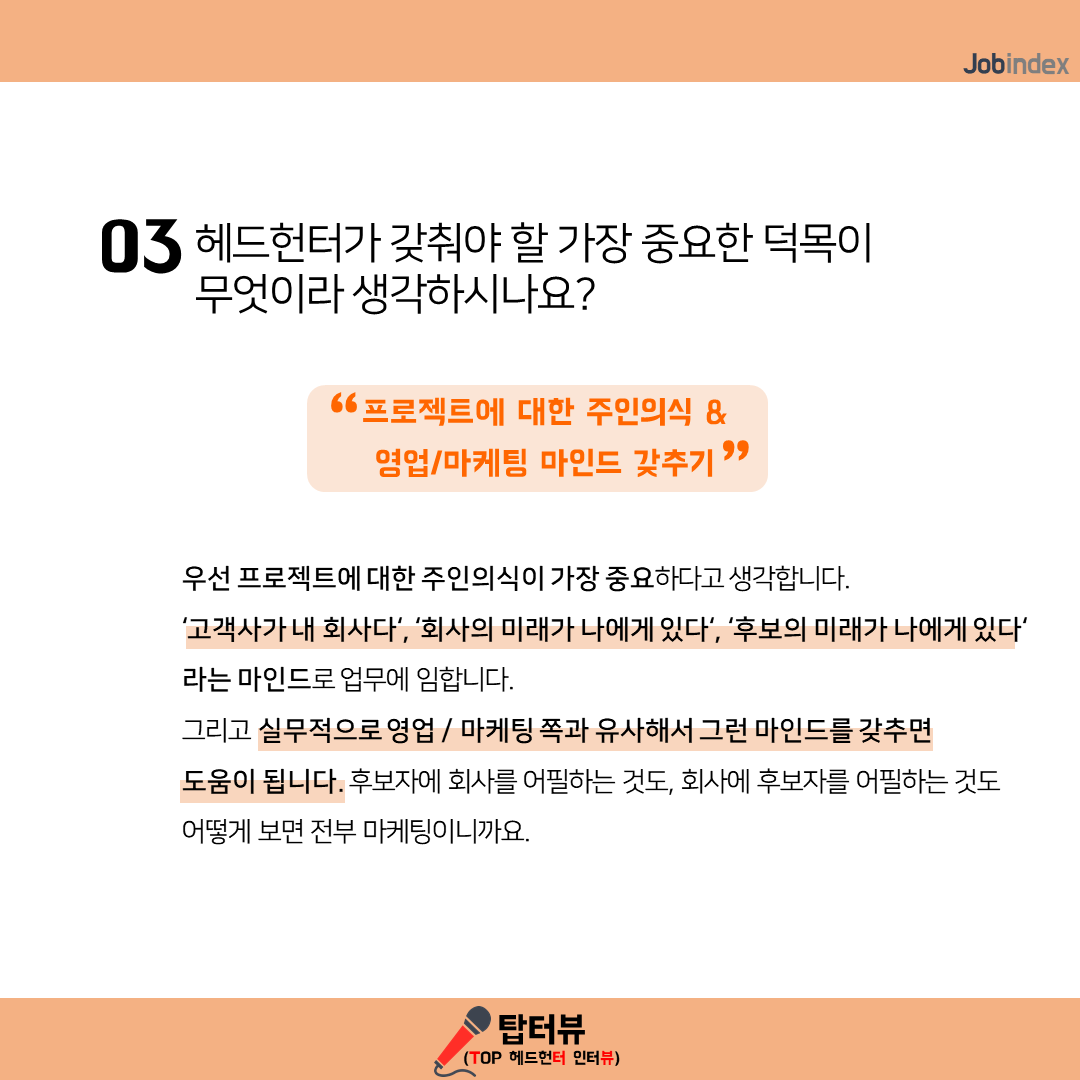 03. 헤드헌터가 갖춰야 할 가장 중요한 덕목이 무엇이라 생각하시나요?