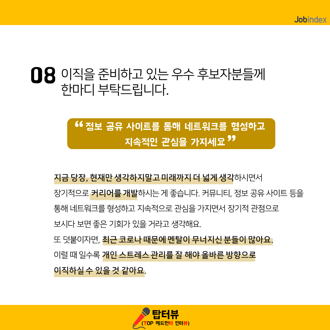 08. 이직을 준비하고 있는 우수 후보자분들께 한마디 부탁드립니다.