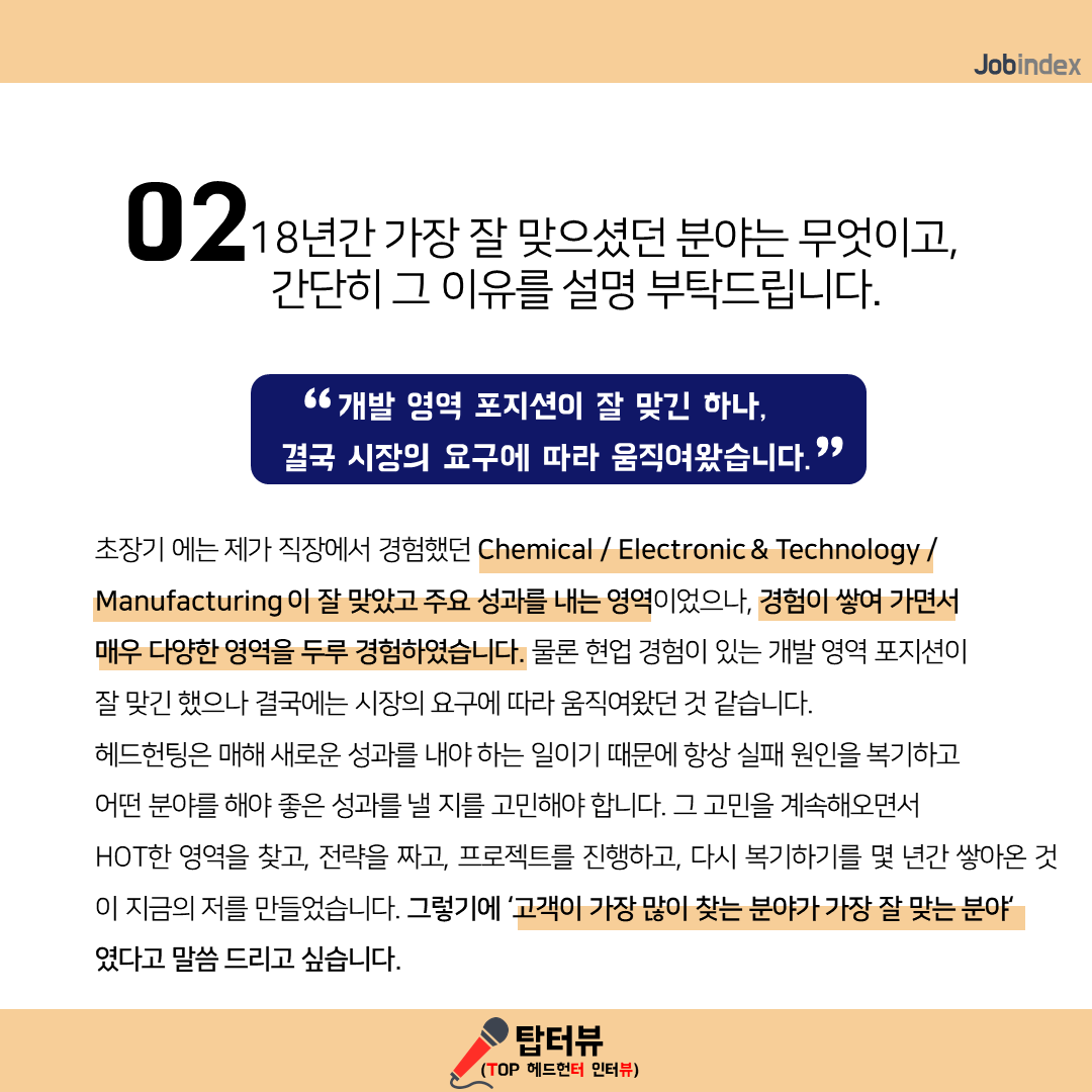 02. 18년간 가장 잘 맞으셨던 분야는 무엇이고,