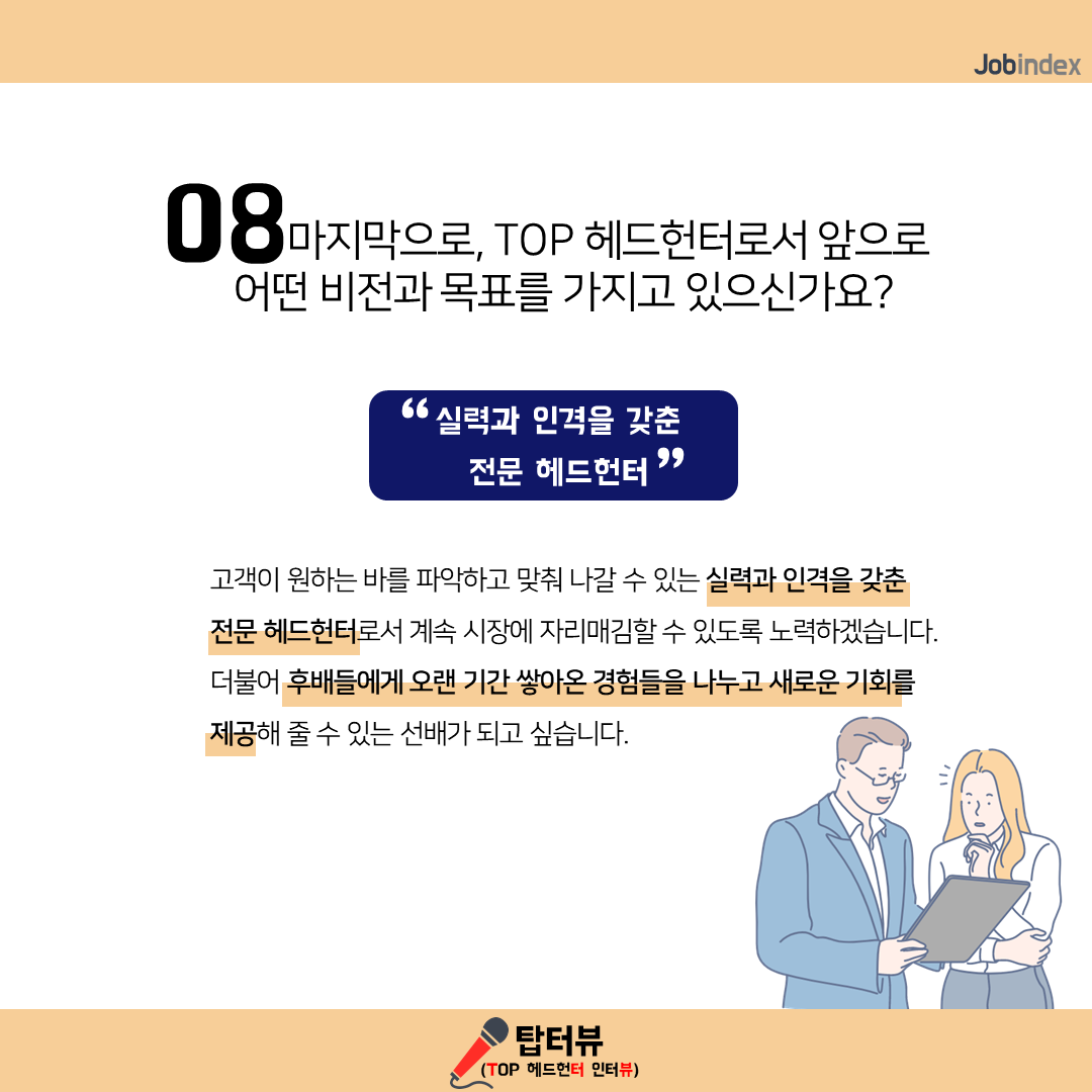 08. 마지막으로, TOP 헤드헌터로서 앞으로 어떤 비전과 목표를 가지고 있으신가요?