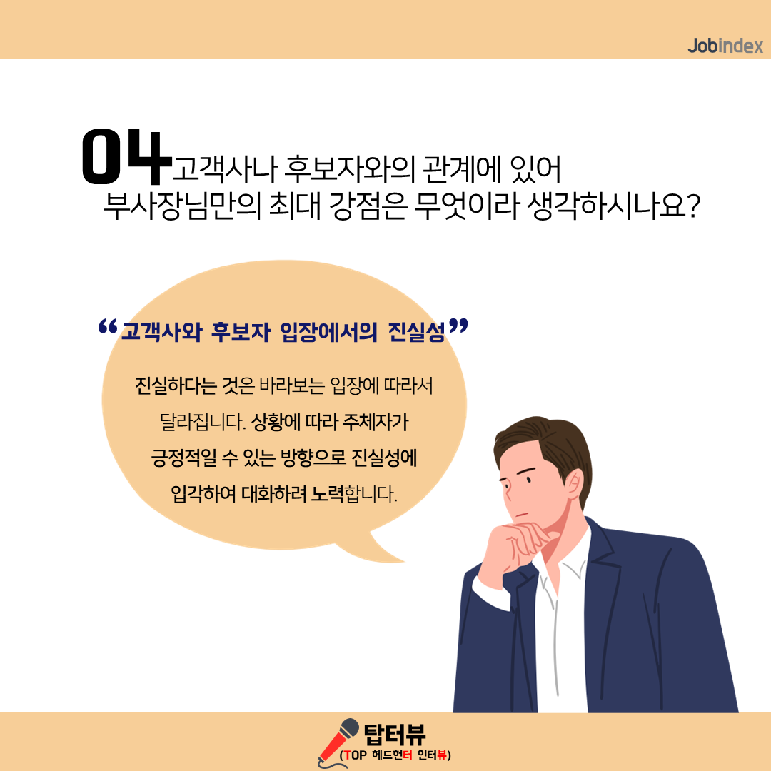 04. 고객사나 후보자와의 관계에 있어 부사장님만의 최대 강점은