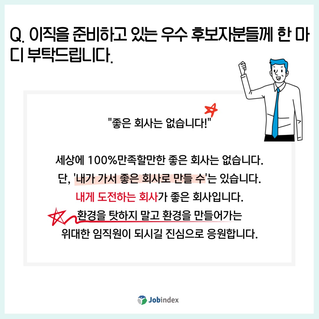 Q. 이직을 준비하고 있는 우수 후보자분들께 한마디 부탁드립니다.