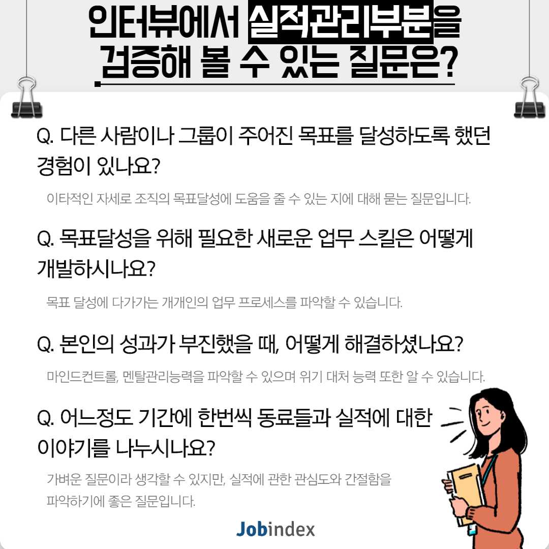 * 인터뷰에서 실적관리부분을 검증해 볼 수 있는 질문은?