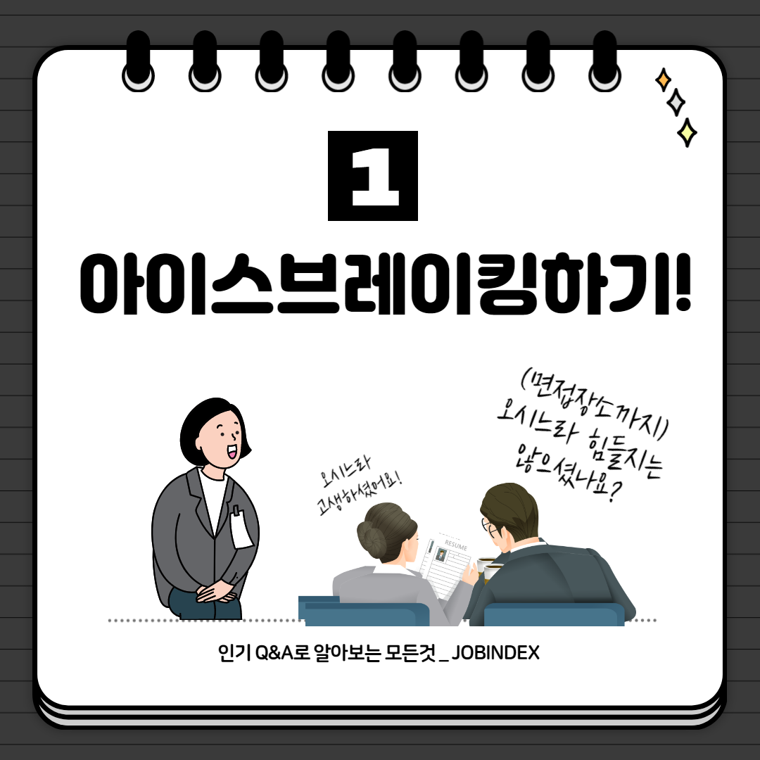 1. (면접장소까지) 오시느라 힘들지는 않으셨나요? 길은 잘 찾으셨나요? (아이스브레이킹)
