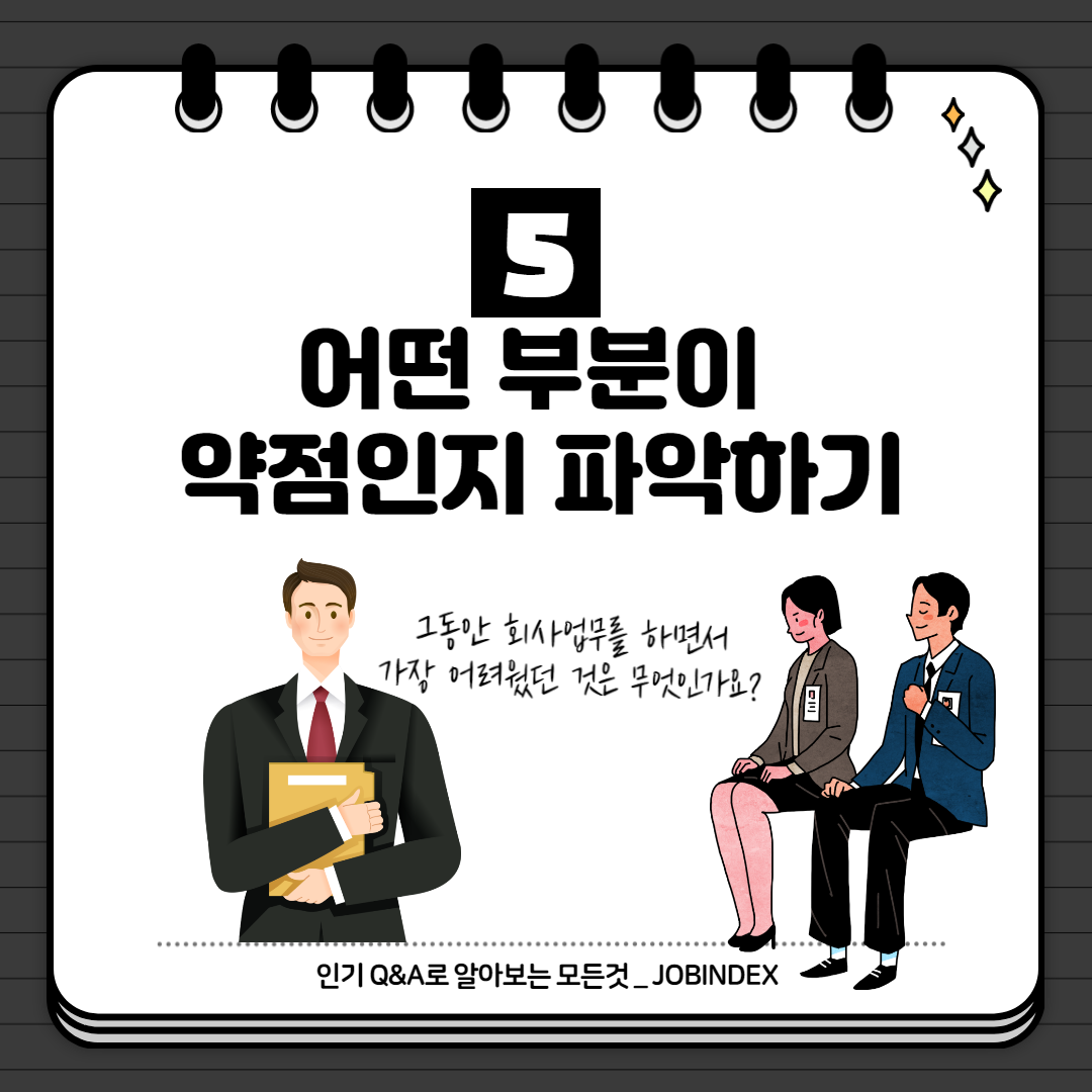 5. 그동안 회사업무를 하면서 가장 어려웠던 것은 무엇인가요? (어떤 부분이 약점인지 파악)