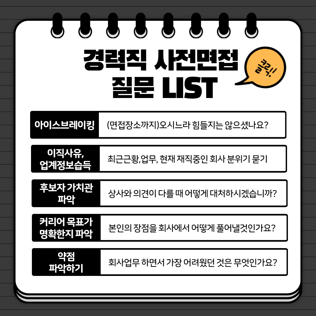 '경력직 후보자와 사전면접 때 물어보면 좋은 질문들' 에 대해서 함께 알아보아요 !