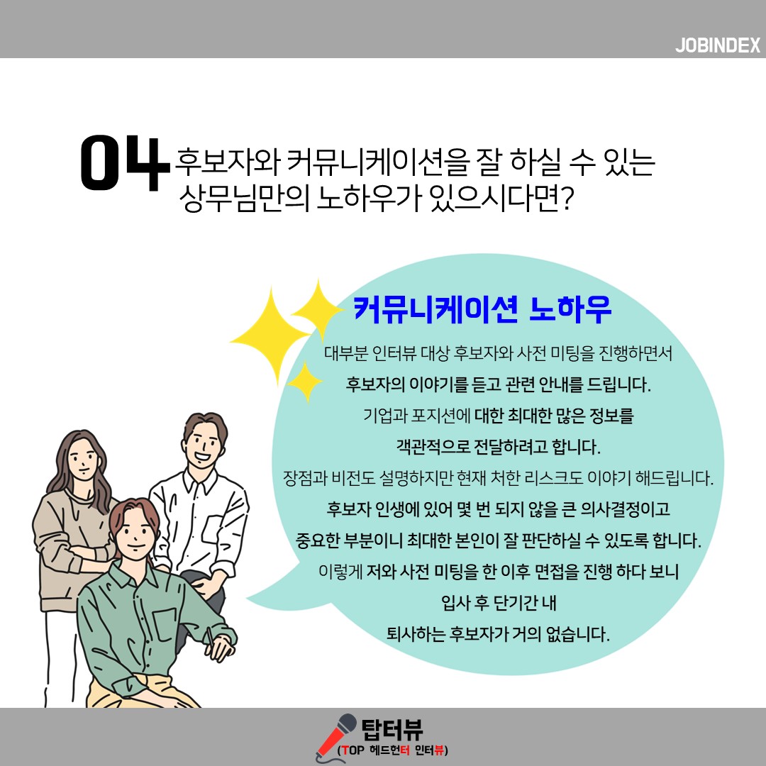 Q. 후보자와 커뮤니케이션을 잘 하실 수 있는 상무님만의 노하우가 있으시다면?