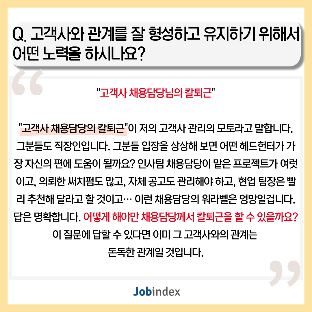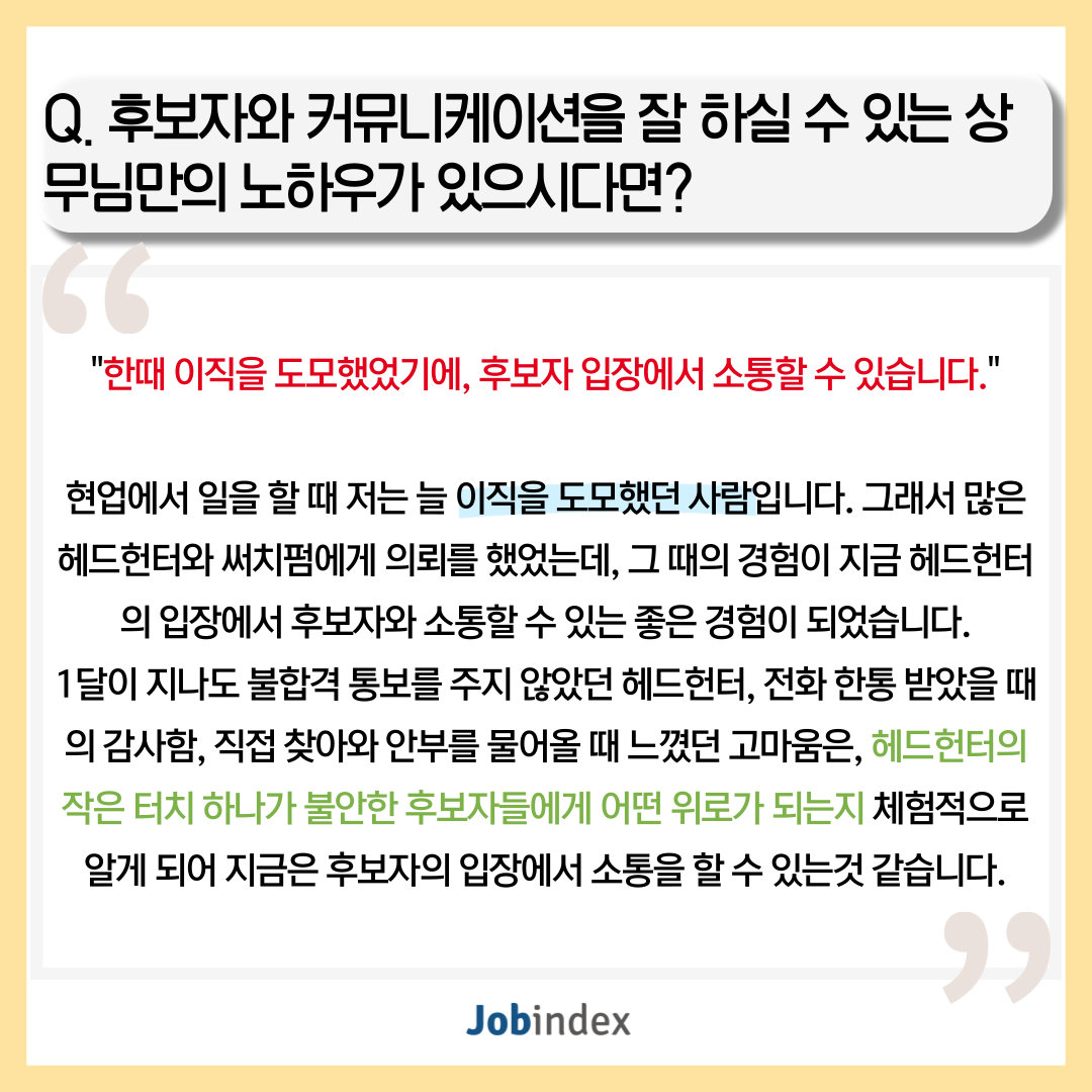 Q. 후보자와 커뮤니케이션을 잘 하실 수 있는 상무님만의 노하우가 있으시다면?