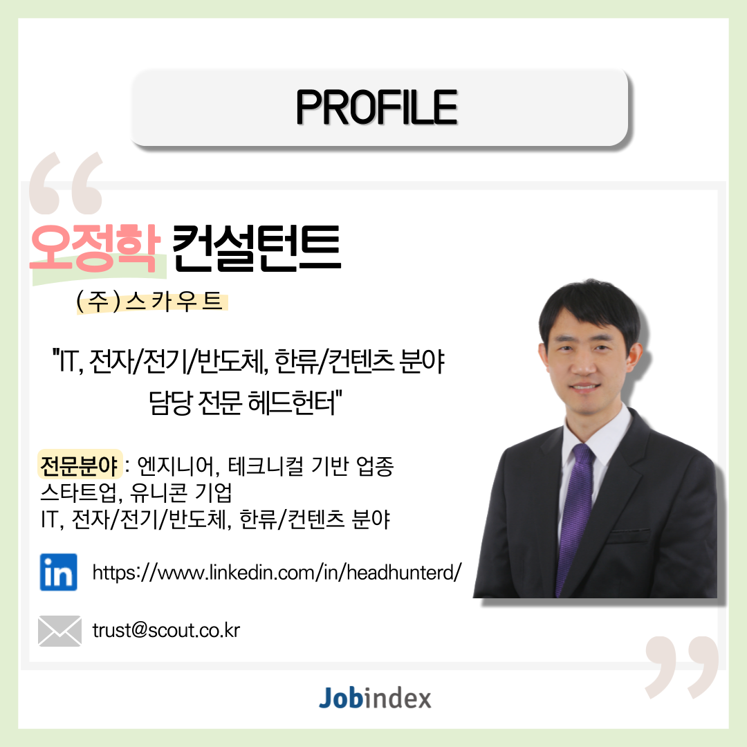 스카우트의 TOP Headhunter 오정학 컨설턴트님의 인터뷰를 지금부터 만나보아요 :-)
