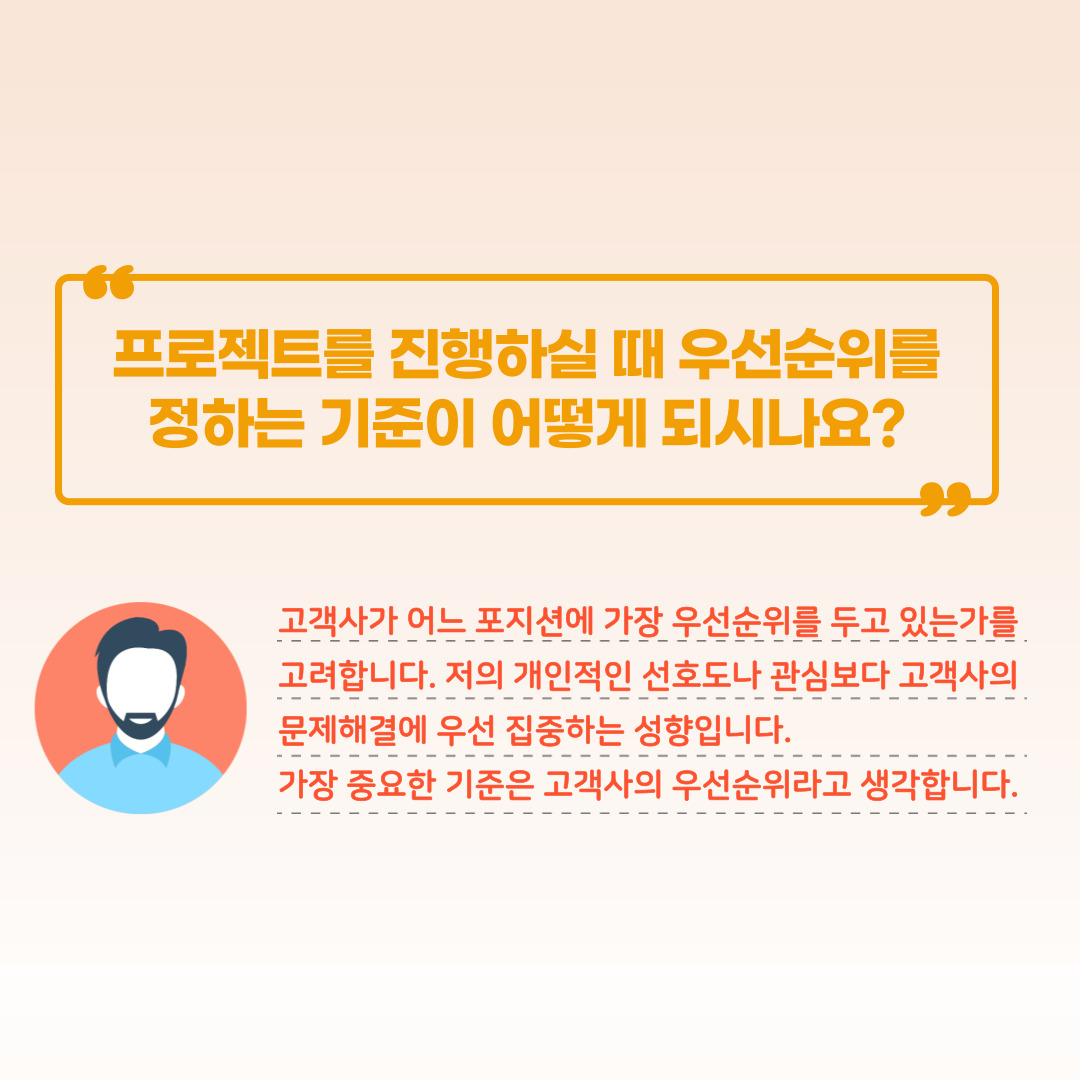 이때 얻으셨던 '서비스 마인드'와 '빠른 상황 판단 능력'은 지금의 업무를 하는데 있어서 큰 도움이 된다고 합니다.