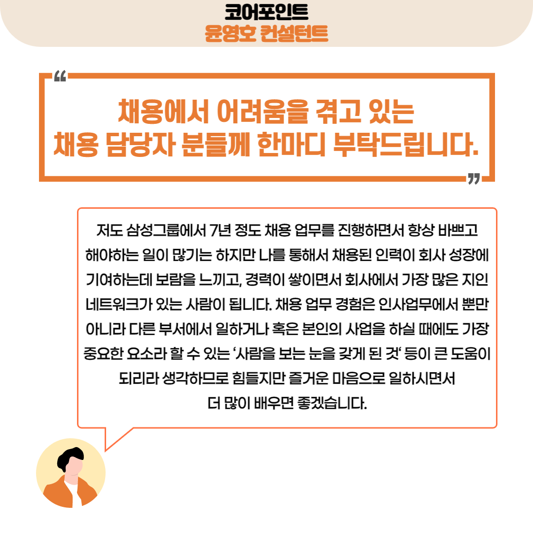 코어포인트 윤영호 대표는 삼성그룹에 입사해서 삼성전자, 삼성SDS, 삼성그룹 인사팀에서 15년 동안