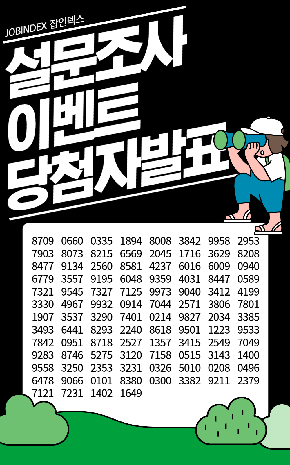🎉당첨되신 100명에 후보자분들은 진심으로 축하드리며 앞으로도 잡인덱스에 많은 관심 부탁드립니다.🎉