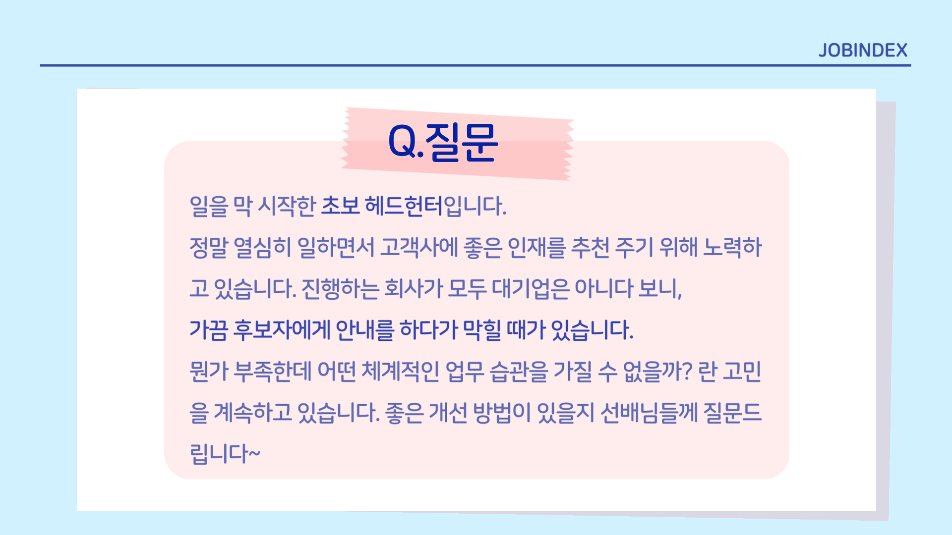 초보 헤드헌터라면, 고객사의 산업과 주요 이슈에 대한 이해가 부족하기 때문에 설명이 매끄럽지 못할 때가 종종 발생합니다.